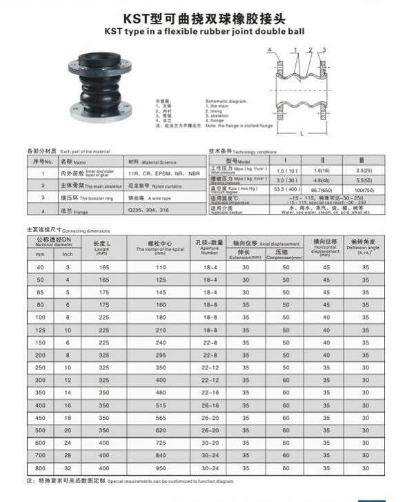雙球體橡膠接頭襯四氟